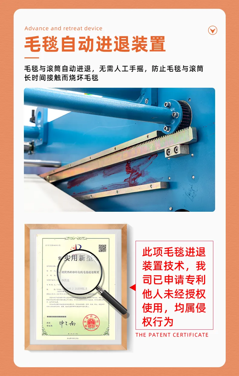 2、毛毯自(zì)動進退(我司專利技(jì)術(→≈$shù)):節省人(rén)工(gōng)的(de♥× )同時(shí)保證毛毯的(de)張力一(yī"↔ε)緻,保護毛毯,提高(gāo)毛毯的(de)使用(λ≠∏yòng)壽命;