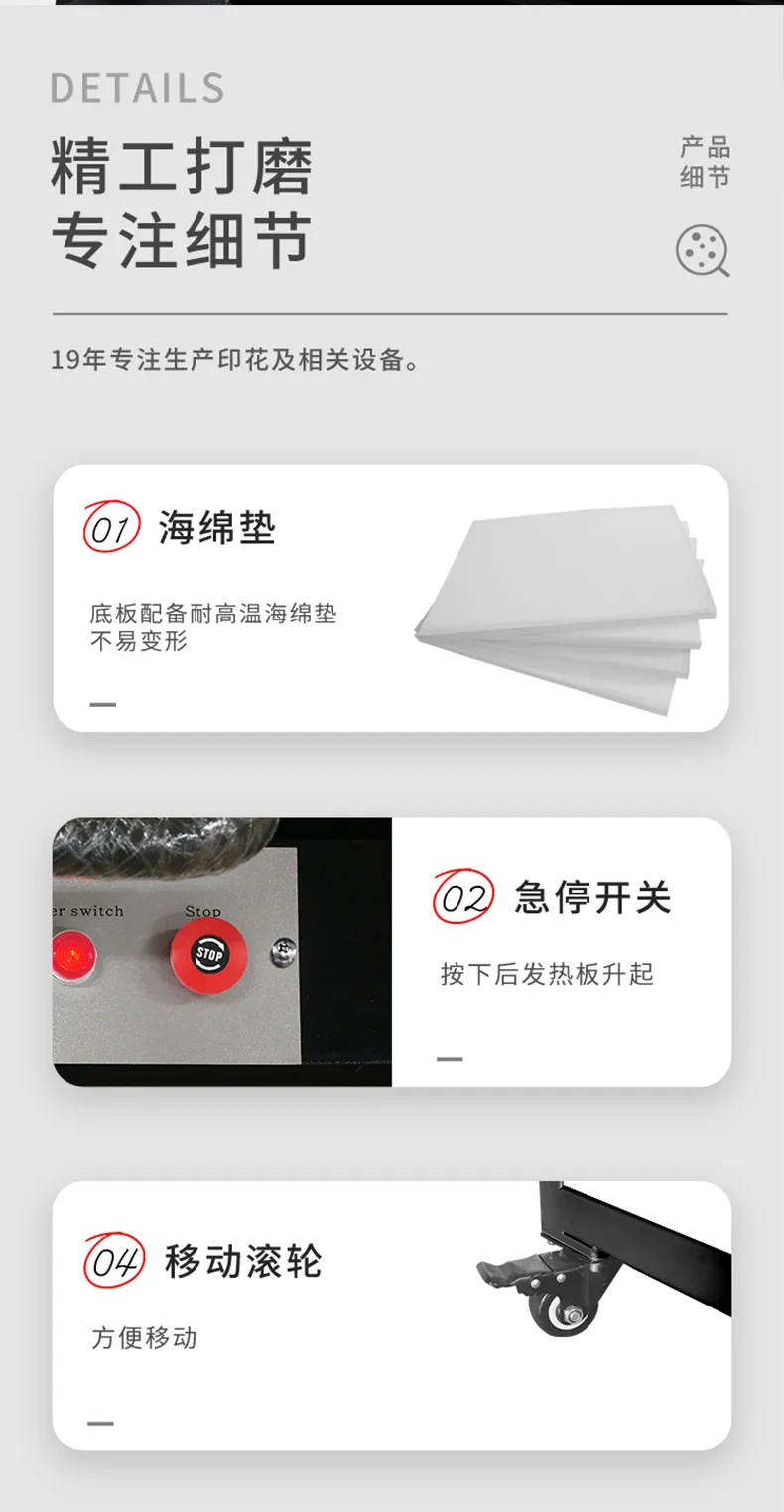 1、适用(yòng)于較大(dà)幅面的(d'σ≤←e)轉印燙畫(huà)作(zuò)業(yè);