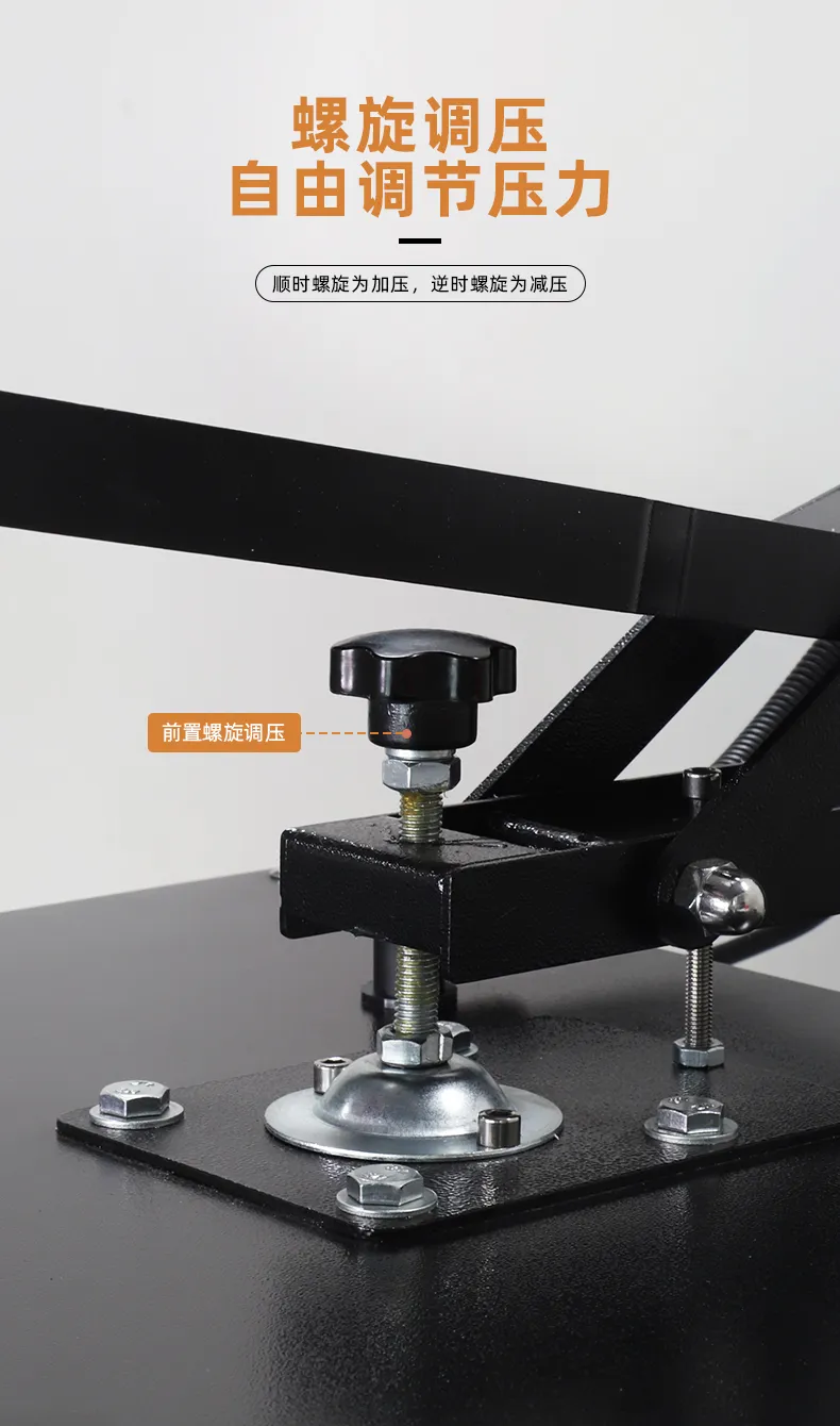 5采用(yòng)前置螺旋調壓,讓發熱(rè)闆可←♣(kě)以小(xiǎo)範圍活動,自(zì) α動調節壓力平衡,垂直下(xià)壓,解決傳統γ✔£>合頁手動機(jī)在壓厚物(wù)時(shí)壓力不(bù)均勻現γ↑₹(xiàn)象