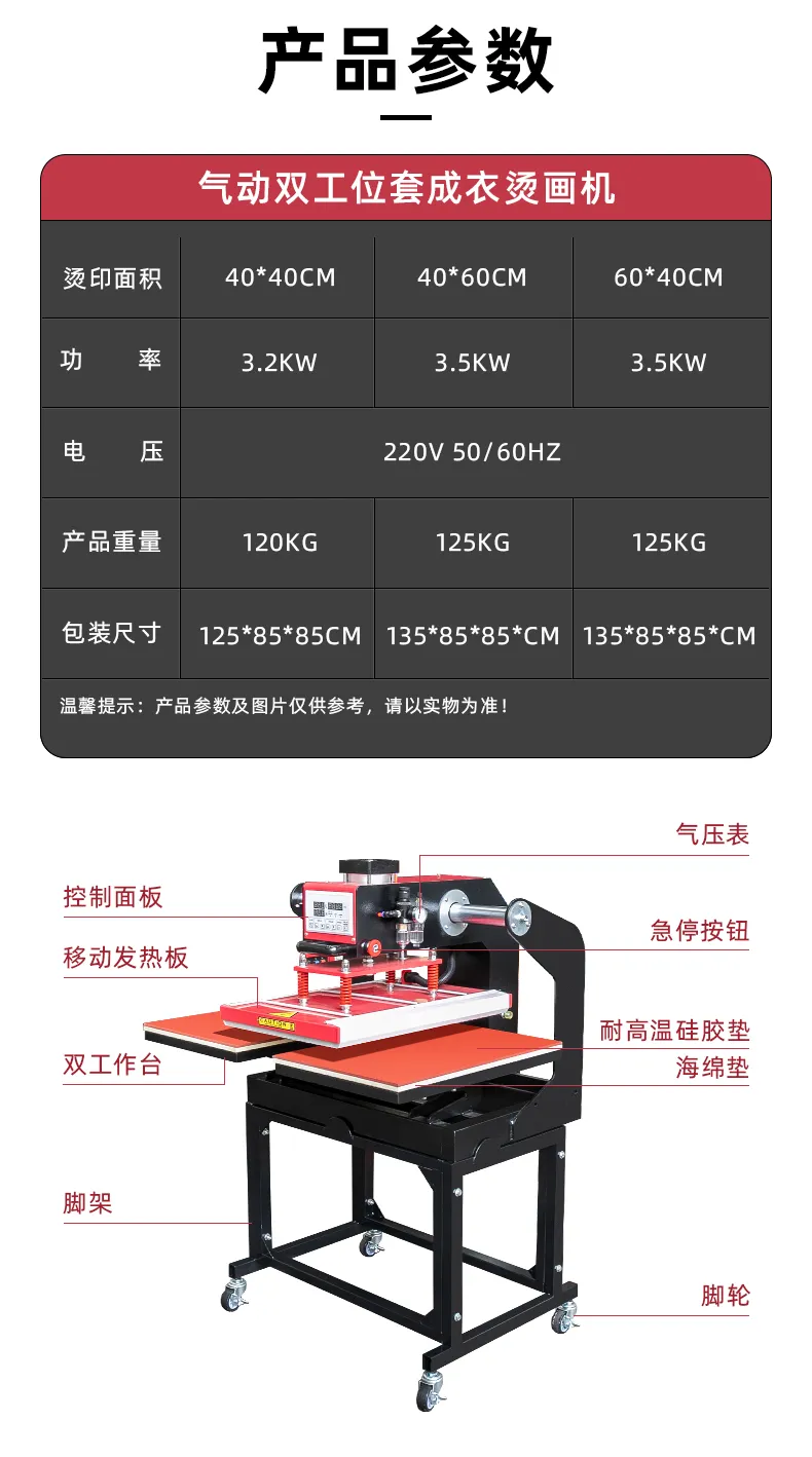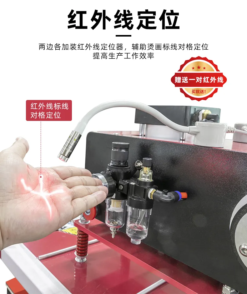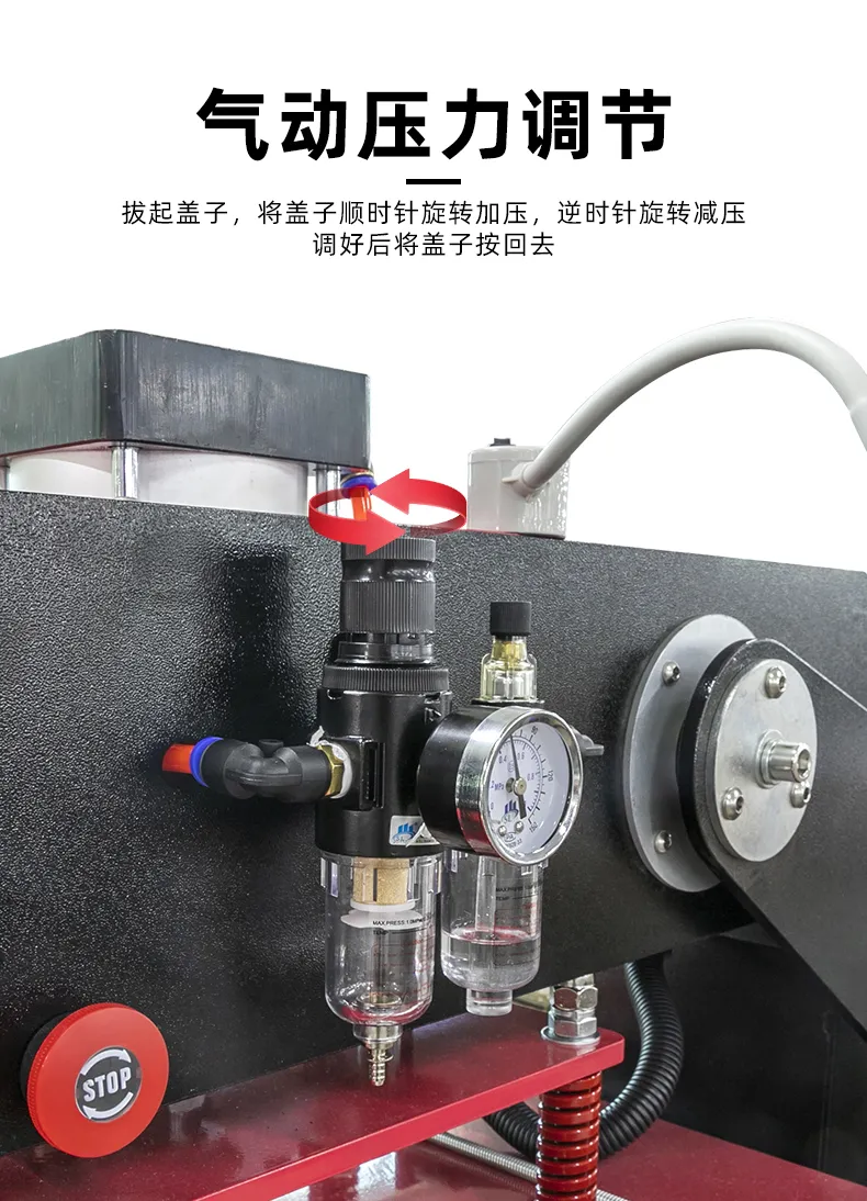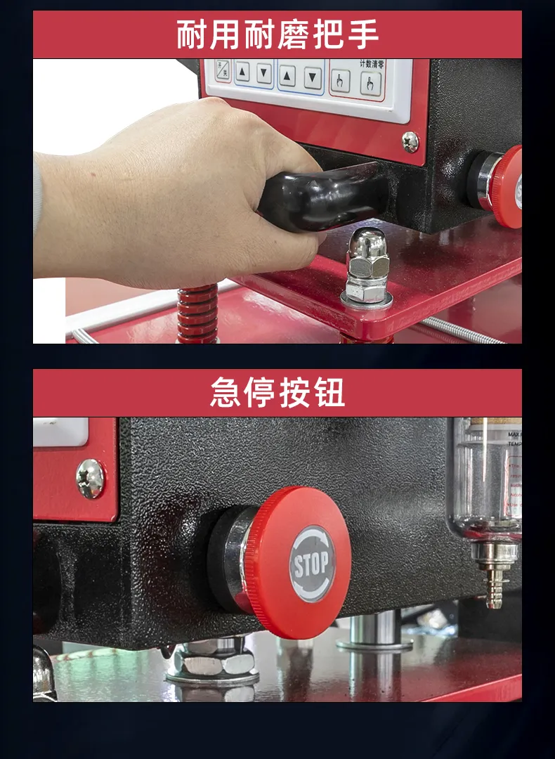 2、溫度、時(shí)間(jiān)數(shù)字直觀顯示,采用(yòng®∑×)氣動壓力燙畫(huà),壓力可(kě)達Ωπ8kg/cm²;