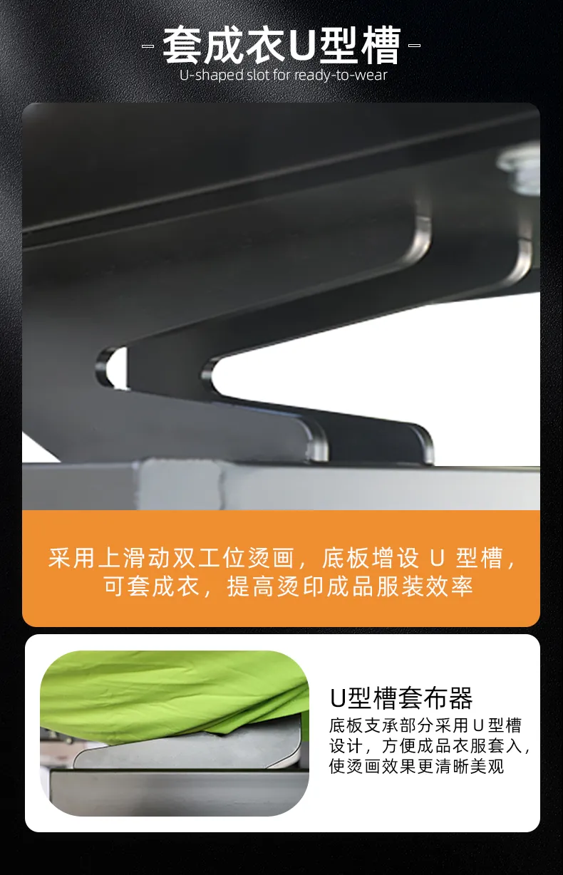 4、U型槽設計(jì),方便套入成品衣服燙畫(huà)。
