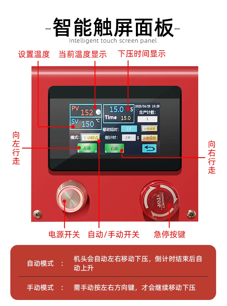 2、觸摸屏控制(zhì)面闆,自(zì)動行(xíng)™♥&™走,自(zì)動燙壓;