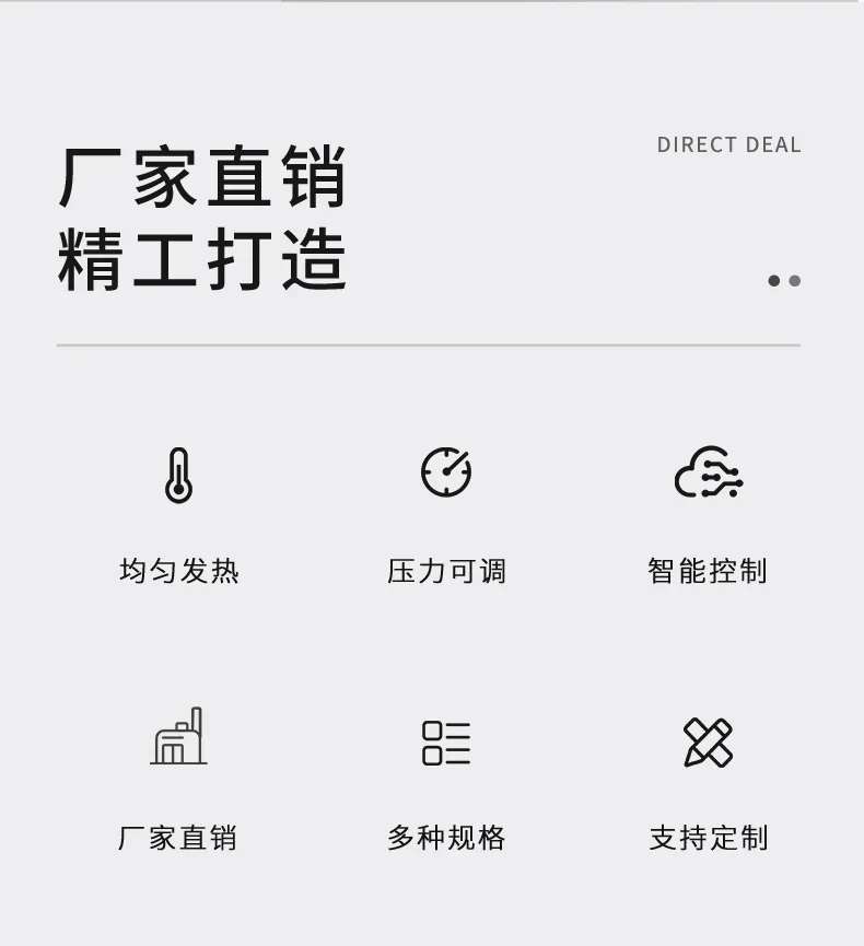 2、氣動款式發熱(rè)闆采用(yòngφ®)氣動驅動式,壓力可(kě)達8kg/cm²,壓力可(kěβ¶ )随意調節;