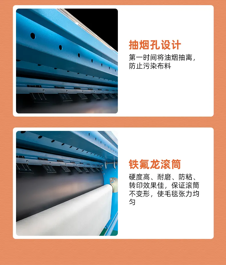4、毛毯包裹滾筒面積達70%:溫區(qū)長(chán®¥g),速度快(kuài),滾筒熱(rè)損耗小(xiǎo),相(₹₽λ✔xiàng)對(duì)标準版(毛毯50%包裹面積)省電±±≤'(diàn)20%;