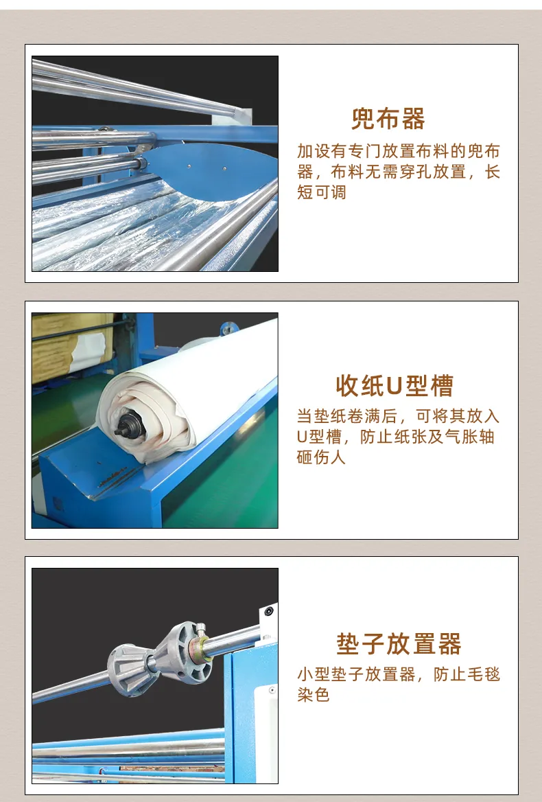 2、毛毯自(zì)動進退(我司專利技(j↔←ì)術(shù)):節省人(rén)工(gōng)的(de)±ε同時(shí)保證毛毯的(de)張力一(yī)緻,保護毛毯,提高 ↔€©(gāo)毛毯的(de)使用(yòng)壽命;←♥₹
