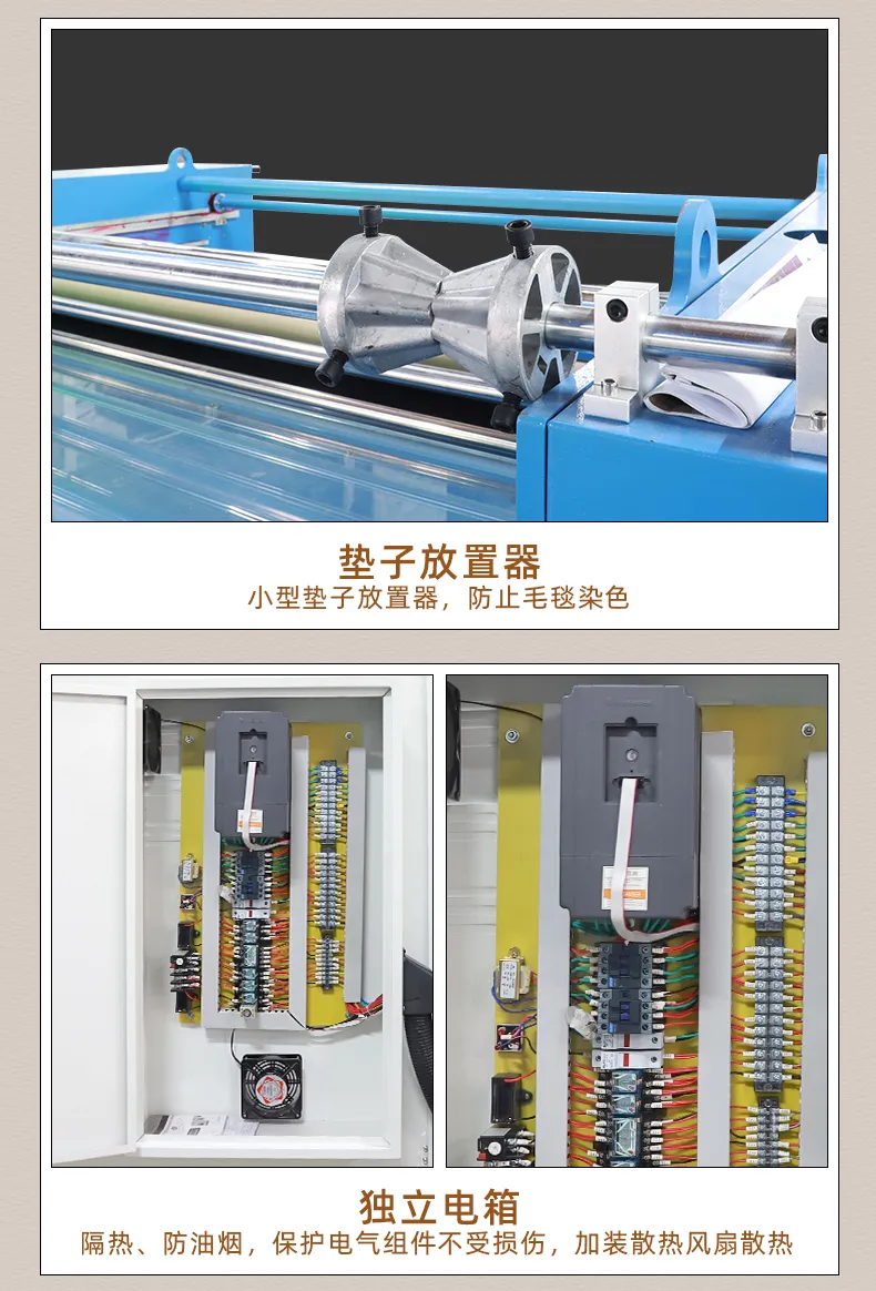 4、毛毯包裹滾筒面積達70%:溫區(qū)長(chεδ↕áng),速度快(kuài),滾筒熱(rè)損耗小(xi♦₹ǎo),相(xiàng)對(duì)标準版∞α(毛毯50%包裹面積)省電(diàn)20%;