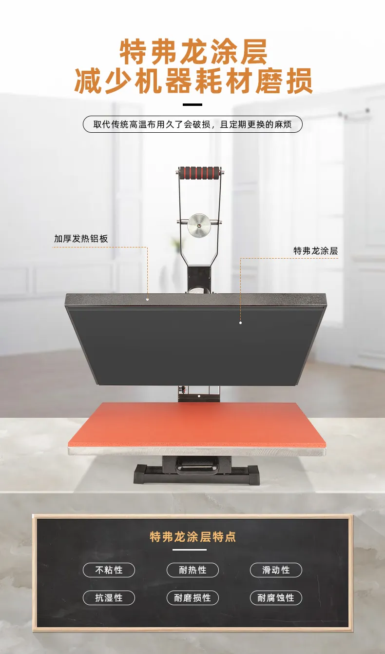 2、發熱(rè)闆表面噴有(yǒu)特氟龍塗層,具有(yǒu):∏<<不(bù)粘性、耐熱(rè)性、滑動性、抗濕性、磨 ₹☆損性、耐腐蝕性特性,對(duì)比傳統表面包裹高(gāo)溫★ β←布,壓力供熱(rè)更加均勻;