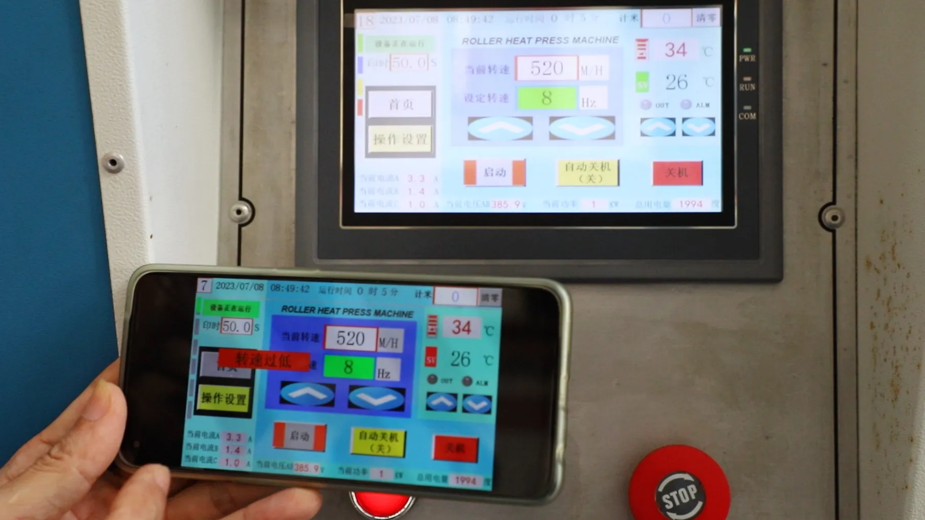 經過多(duō)年(nián)研發生(s&☆γhēng)産經驗,我們終于可(kě)以遠(yuǎn)程查看(kàφ₽£n)或操控滾筒熱(rè)轉印機(jī),隻需一(yī)台手機(©★£₽jī),連接網絡,觸摸屏連接WiFi,就(jiù)可(kě)輕松通(tōng×↔∑)過手機(jī),在辦公室吹著(zhe)空(kōng)調,遠(y€÷✔uǎn)程設置滾筒參數(shù),再也(yě)不(bù)需要(yào)員(y↑απuán)工(gōng)近(jìn)距離(lí)挺著(z≈↕πhe)滾筒的(de)熾熱(rè)設置參數(shù)。